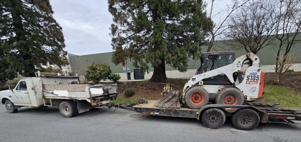 “Unbelievably, all these violations, and more, were noted on one dump truck pulling a flat deck trailer with a bobcat,” RCMP said.