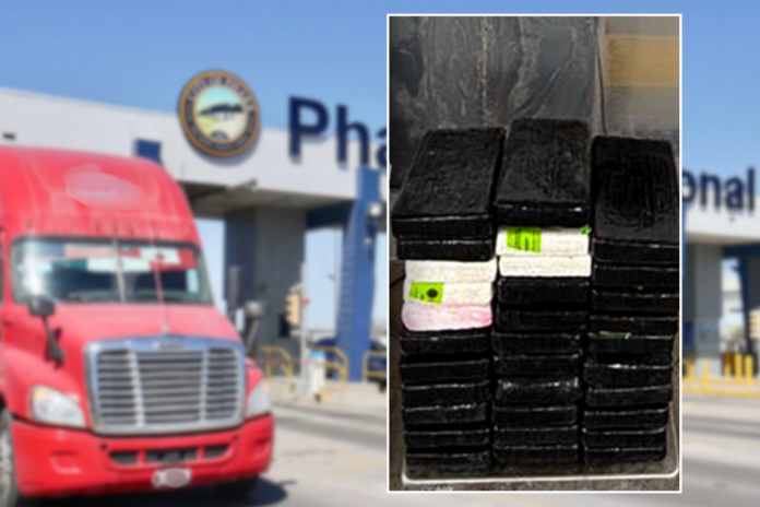 PHARR, TEXAS — U.S. Customs and Border Protection officers seized nearly 100 pounds of suspected cocaine worth more than $1.1 million after discovering 32 packages concealed within the floor of a commercial tractor-trailer that was declared empty at the Pharr International Bridge cargo facility on April 15.