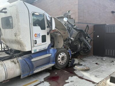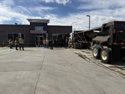 The crash occurred at 1:33 p.m. on March 10, 2026, at 2338 W. Belleview Avenue. South Metro Fire Rescue, West Metro Fire Rescue, and Littleton Police responded to find a semi-truck and a passenger vehicle had struck the building, causing a partial wall collapse. The semi’s cab had pushed the passenger vehicle sideways, compressing it entirely against the brick wall. The vehicle’s roof, front end, and body were crushed beyond recognition. Littleton Police officers and bystanders extricated the single occupant and moved them to safety before firefighters arrived. The occupant went to a hospital by emergency transport. Five employees and approximately 25 customers evacuated safely. No injuries were reported among those inside.