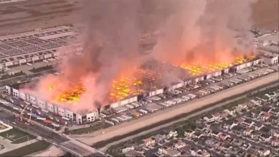 ONTARIO, CALIFORNIA — A massive 6-alarm fire tore through a Kimberly-Clark distribution center in Ontario early Tuesday morning, destroying the 1.2-million-square-foot facility, its entire inventory, and multiple big-rig trucks parked at the loading docks. An employee reported missing during the initial evacuation is now in custody as the primary arson suspect. All 20 employees on site escaped unharmed.