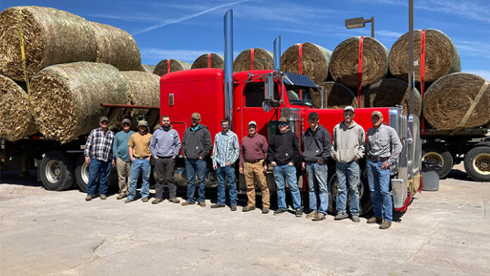 WASHTA, IOWA — Eleven tractor-trailers carrying 350 bales of hay left Washta, Iowa Wednesday morning, headed to ranchers in Nebraska whose feed supplies were destroyed in the largest wildfires in the state’s history.