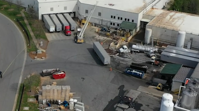 The explosion occurred at approximately 7:15 a.m. on Tuesday, April 7, outside the Carolina Beverage Group facility off Barley Park Lane in Mooresville. The tanker was carrying 1,100 gallons of sodium hydroxide, a chemical commonly used as an industrial cleaner. The driver arrived at the plant for a delivery, got out of his truck, noticed a leak on the tanker, and reported it to his company. Twenty minutes later, the cargo tank exploded, separating the back compartment from the tank. First responders found the driver’s body in the area of the blast.