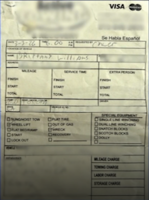 Brittany Williams was involved in a crash when a tow truck driver approached her within minutes. He told her police had contacted him and offered to help. Williams signed a towing receipt. After that, her car was taken to an unknown tow yard. When she tried to call the driver, the phone number was disconnected. When she looked up the business address on the bill, it led to railroad tracks in South Los Angeles — not a real business.