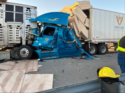 The initial crash occurred just before 4 p.m. on Sunday. A 2020 Kenworth driven by a 42-year-old male from Ephrata, Washington, with a 35-year-old female passenger, veered off the left side of westbound I-44 approximately three miles east of Stotts City. The semi overturned and caught fire. The female passenger died at the scene. The driver suffered serious injuries and was transported to a hospital in Springfield. Authorities have not released the identities of those involved. The cause of the initial crash remains unknown.
