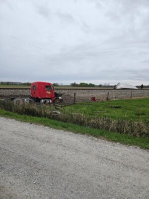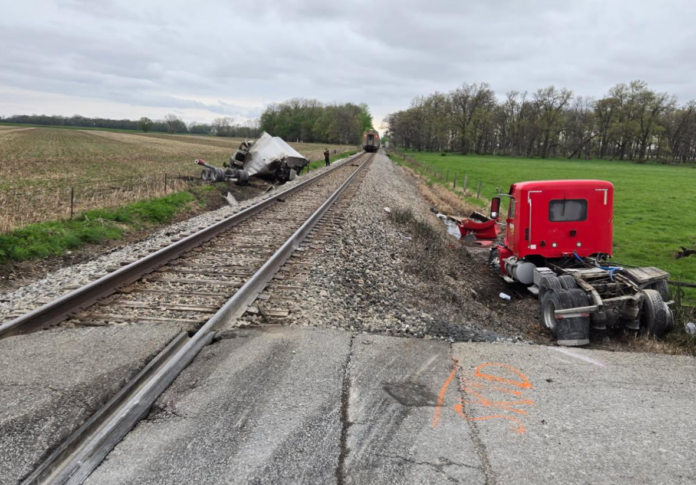 Preliminary investigation indicates the semi-truck was traveling northbound on County Road 210 East when a westbound Amtrak train struck it as it crossed the tracks. The railroad crossing was equipped with standard railroad crossing signs and stop signs, both of which were confirmed to be in the upright position at the time of the crash.