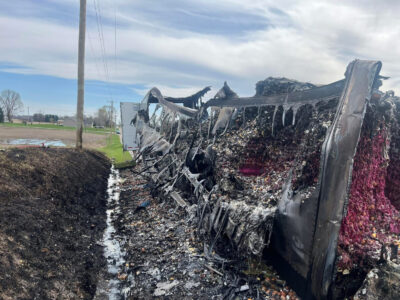 Shea reacted quickly, getting the semi-truck away from the trailer before the fire spread. The trailer was a total loss. The truck cab sustained no damage.