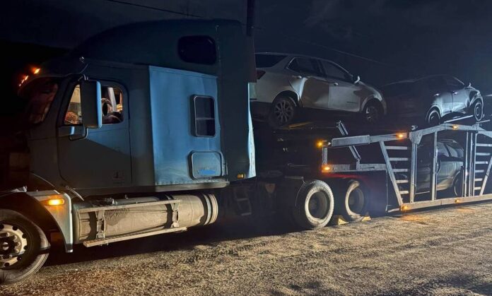HIGHWAY 5, BRITISH COLUMBIA, CANADA — A Canadian truck driver received nearly $2,000 in fines and had his tractor unit towed after BC Highway Patrol stopped his auto transport trailer on Highway 5 between Barriere and Clearwater on March 28, 2026, and found none of the vehicles on board properly secured — three with no securement at all.