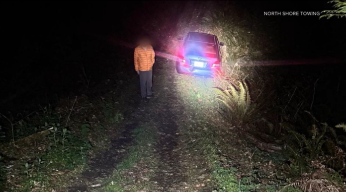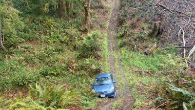 BELFAIR, WASHINGTON — A Belfair tow truck driver hiked more than half a mile through dense woods in the middle of the night to rescue a young Uber Eats driver who had followed GPS directions onto a private logging road and gotten his car stuck in the mud nearly a mile and a half from the nearest accessible road.